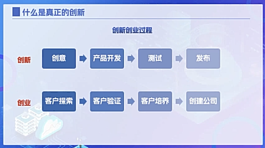 然后,回歸創新本質看大賽,貼近學生生活舉例,指出創新涵蓋技術、產品、服務、商業模式、管理等多種類型,以拓展學生創新視野。從技術的實現性和市場的接受度兩個維度向學生展示什么樣的創新項目是大賽中的潛力項目,引導學生從“技術”+“客戶”兩個維度挖掘出自己項目的精髓。