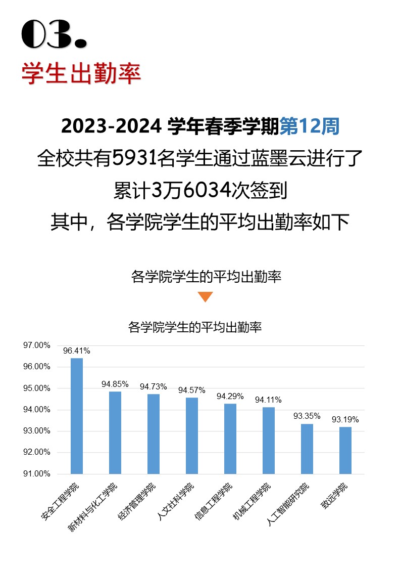 您目前的位置: 首頁» 新聞動態» 2023-2024學年春季學期第十二周藍墨云到課率統計數據