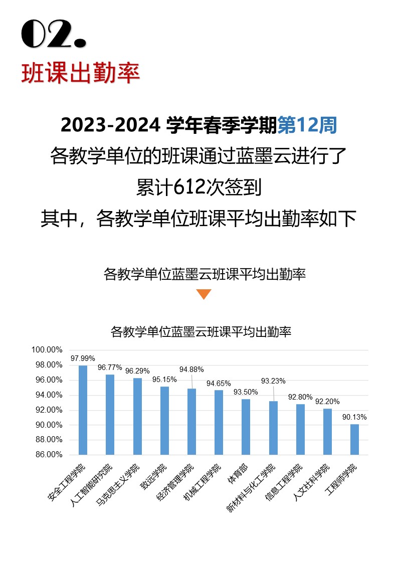2023-2024學年春季學期第十二周藍墨云到課率統計數據