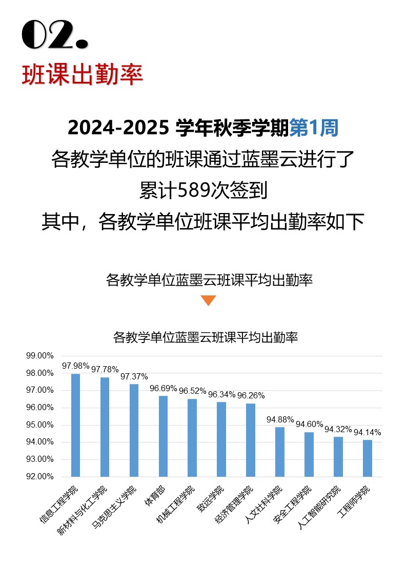 » 2024-2025學年秋季學期第一周藍墨云到課率統計數據