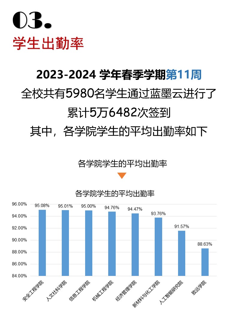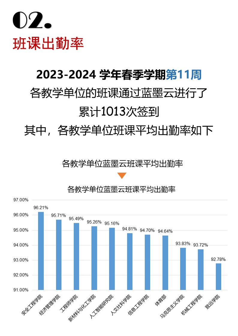 » 2023-2024學(xué)年春季學(xué)期第十一周藍(lán)墨云到課率統(tǒng)計(jì)數(shù)據(jù)