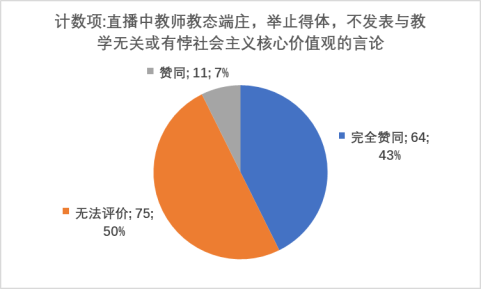 (14)直播中教師教態端莊,舉止得體,不發表與教學無關或有悖社會主義核心價值觀的言論(非直播課程可選“無法評價”)