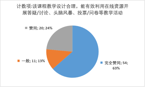 (10)該課程教學設計合理,能有效利用在線資源開展答疑/討論、頭腦風暴、投票/問卷等教學活動