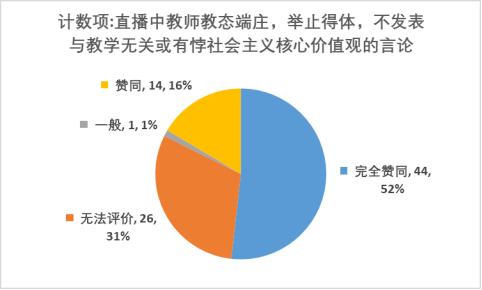 (14)直播中教師教態端莊,舉止得體,不發表與教學無關或有悖社會主義核心價值觀的言論(非直播課程可選“無法評價”)