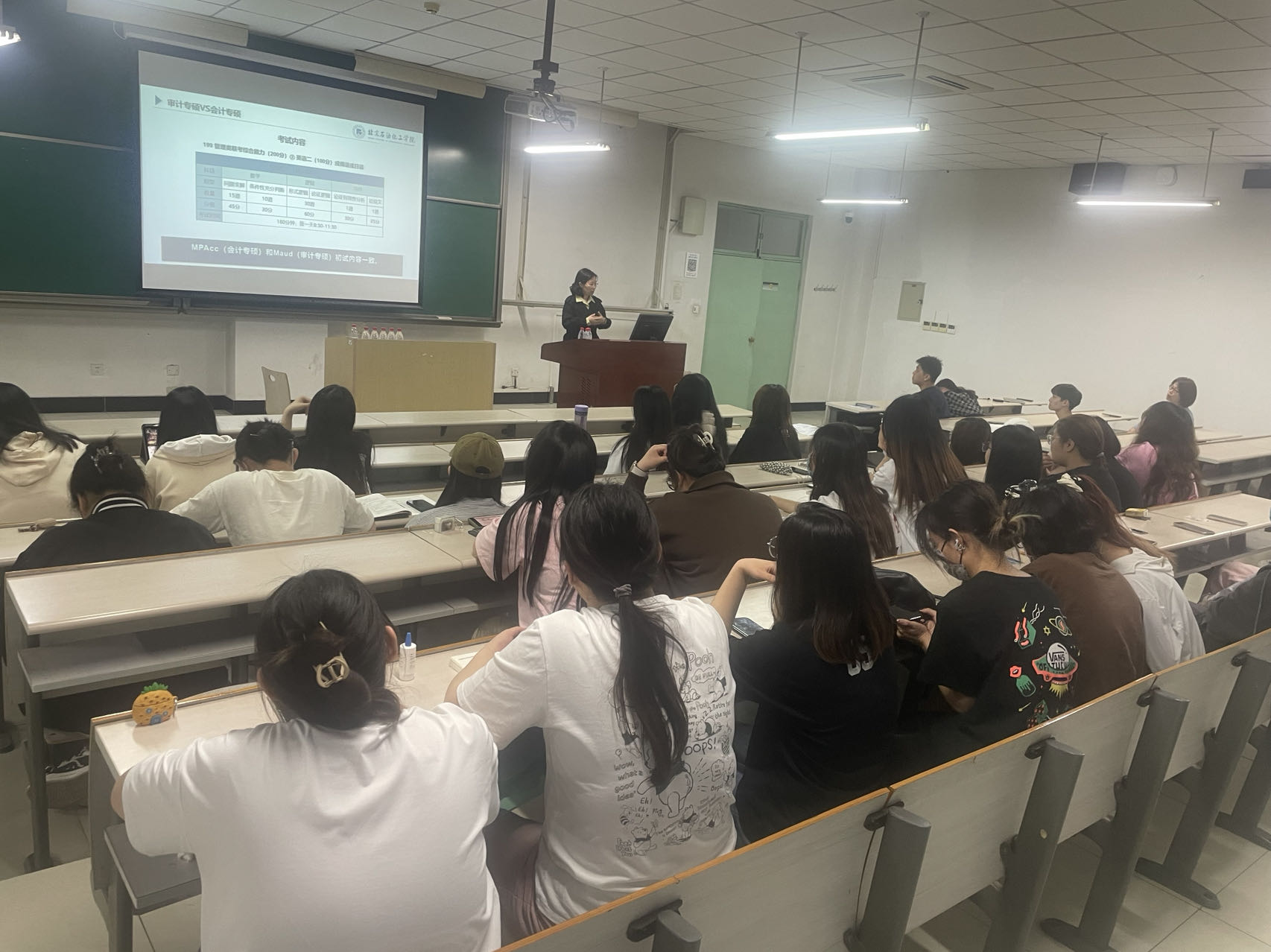 王樺、姚迪分別介紹了我校審計專碩、工商管理學碩的方向和報考優勢,用數據說話,分析未來對兩個方向碩士的人才需求前景,詳細講解考試內容范圍,鼓勵同學們理性做好選擇報考我校碩士研究生。