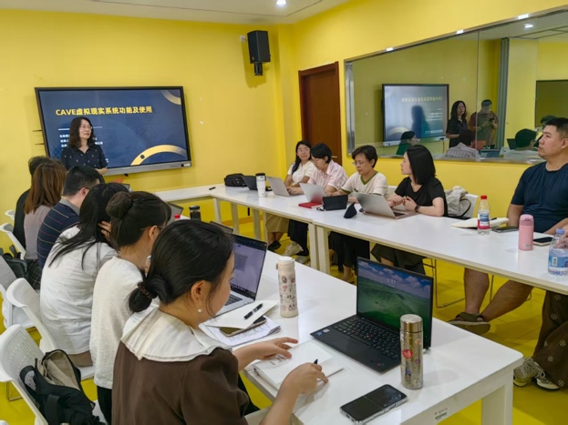 為確保培訓(xùn)的系統(tǒng)性與實效性,學(xué)校將培訓(xùn)內(nèi)容分為六大專題模塊,涵蓋CAVE虛擬現(xiàn)實系統(tǒng)、眼動追蹤系統(tǒng)、行為觀察系統(tǒng)、女媧數(shù)字人直播一體機(jī)、仿真機(jī)器人及場館管理系統(tǒng)。培訓(xùn)采取“理論+實操”方式,在理論層面,設(shè)備專家詳細(xì)講解了技術(shù)原理、系統(tǒng)功能和應(yīng)用場景等;在實踐層面,學(xué)員們通過沉浸式體驗、三維建模、數(shù)據(jù)采集與分析、人機(jī)交互操作等環(huán)節(jié),切實提升了技術(shù)應(yīng)用能力、實踐創(chuàng)新能力、課程建設(shè)能力。