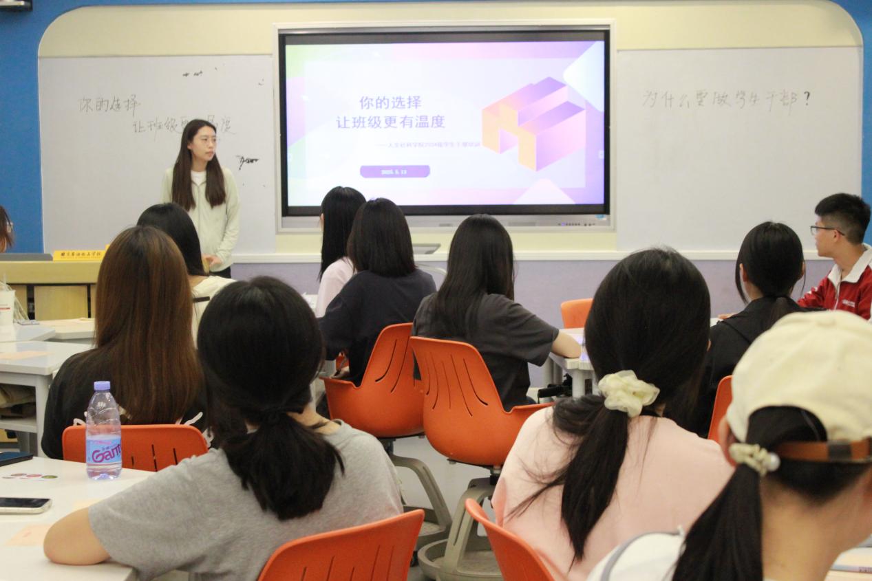 近日,學校人文社科學院為提升新生班干部綜合能力,打造優質班干部隊伍,推動班級高質量發展,在主樓4302舉辦了“你的選擇,讓班級更有溫度”主題培訓。此次培訓由學校輔導員王崢老師主講,面向2024級全體班長和團支書,通過游戲化互動、“沉浸式”案例研討、經驗分享等豐富形式,緊扣班干部成長發展需求展開。
