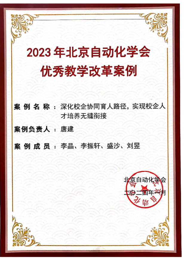 近日,北京自動化學會發布了2023年北京自動化學會優秀教學改革案例,我校自動化系申報的案例《深化校企協同育人路徑,實現校企人才培養無縫銜接》獲此殊榮。