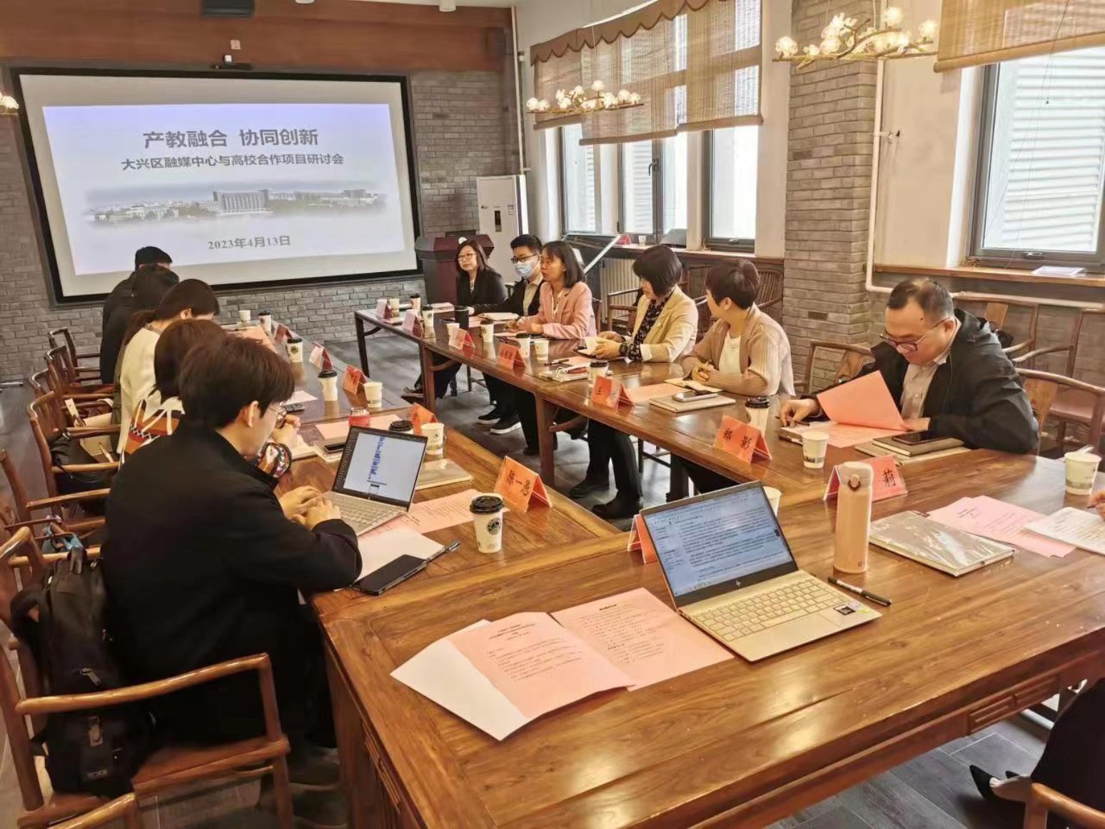 4月13日上午,人文社科學(xué)院與大興區(qū)融媒體中心合作舉辦融媒工作室項(xiàng)目研討會(huì),與四所高校的專家共同商議產(chǎn)教融合、協(xié)同創(chuàng)新相關(guān)事宜,為大興區(qū)域形象的塑造和傳播建言獻(xiàn)策。參加研討會(huì)的有大興區(qū)融媒體中心黨組書記、主任馬憲穎,副主任王嬌及工作人員;北京師范大學(xué)新聞傳播學(xué)院黨委副書記祁雪晶;中國傳媒大學(xué)國際傳媒教育學(xué)院國內(nèi)合作負(fù)責(zé)人韓峻巍;北京體育大學(xué)新聞與傳播學(xué)院副教授劉湜;北京印刷學(xué)院新聞傳播學(xué)院新聞系主任常昕;人文社科學(xué)院副院長楊鐘紅、王國洪,副書記鄭影,會(huì)展專業(yè)責(zé)任教授陳一愚及骨干教師等一同參會(huì)。