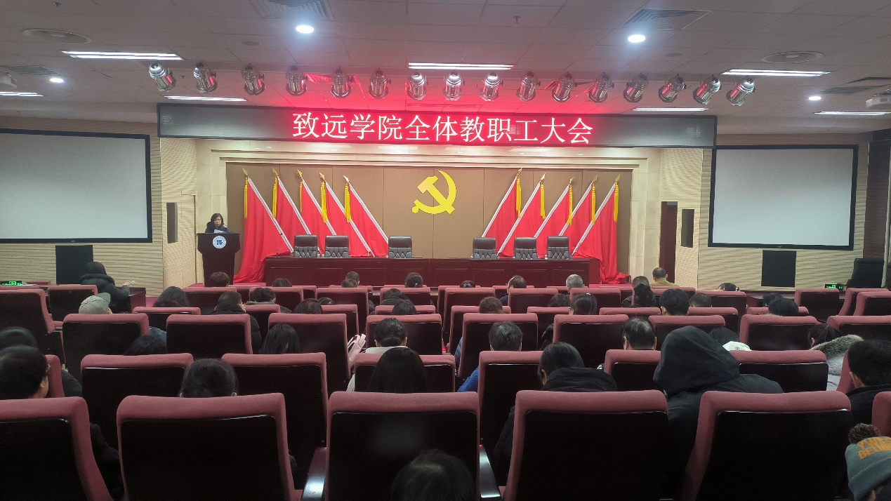 1月16日上午,致遠學院在綜合實驗樓一層報告廳召開教職工大會暨領導班子述職述廉大會、工代會教代會年會。學院領導班子及全體教職工參加會議。