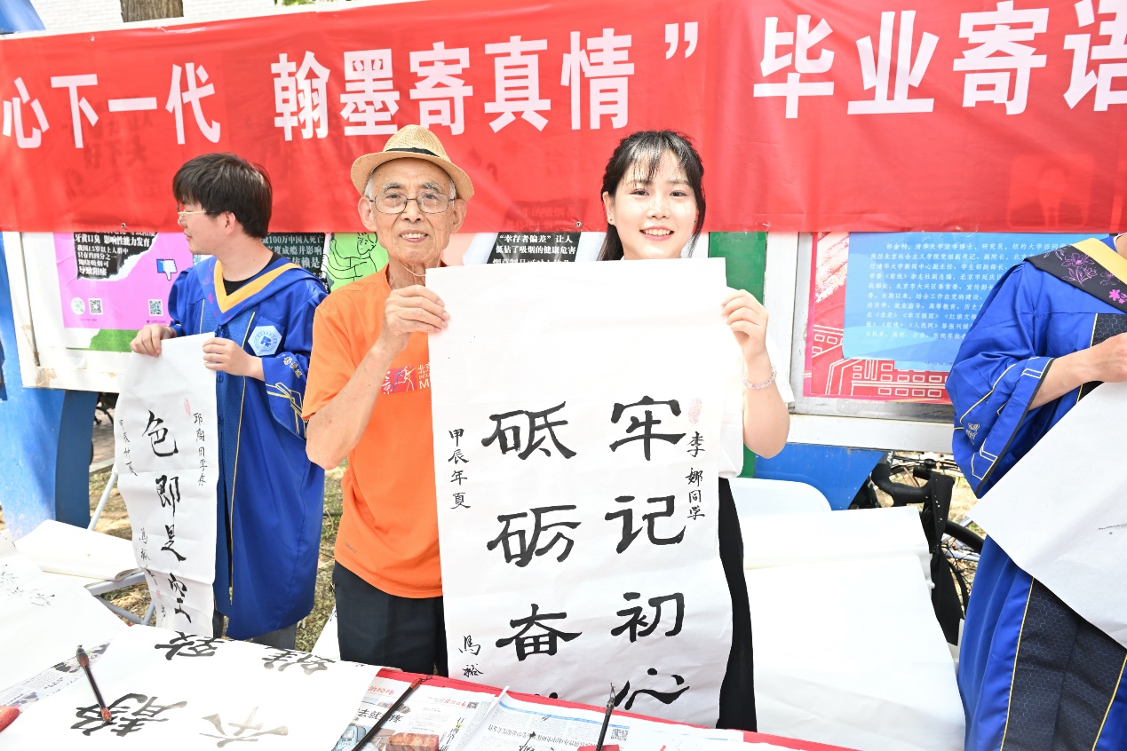 翰墨寄情,一幅幅作品,承載著母校對學子的一片深情,承載著老一輩教育工作者對晚輩的一片厚意!通過這種特殊的表達方式,對畢業同學寄予了深厚的期望和良好的祝愿,相信會對即將踏入人生新征程的畢業生們起到勵志圖強的作用,激勵他們畢業之后,努力工作,踏實做人,成就人生輝煌,為母校爭光,成為黨和國家的棟梁,為中國式現代化建設作出新貢獻。