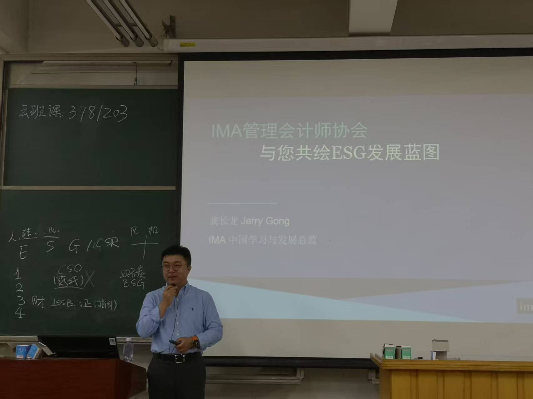 龔長龍則分別從全球人才需求視角,向同學們介紹了IMA最新發布的《管理會計能力素質框架(2025版)》。他指出,在數字化與綠色轉型雙輪驅動下,從業人員需具備數據分析、可持續治理、戰略決策等復合能力,鼓勵學生“主動擁抱變化,通過持續學習搶占ESG人才賽道先機”。