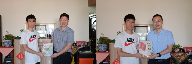 陳家慶為劉泉鶴同學頒發錄取通知書
