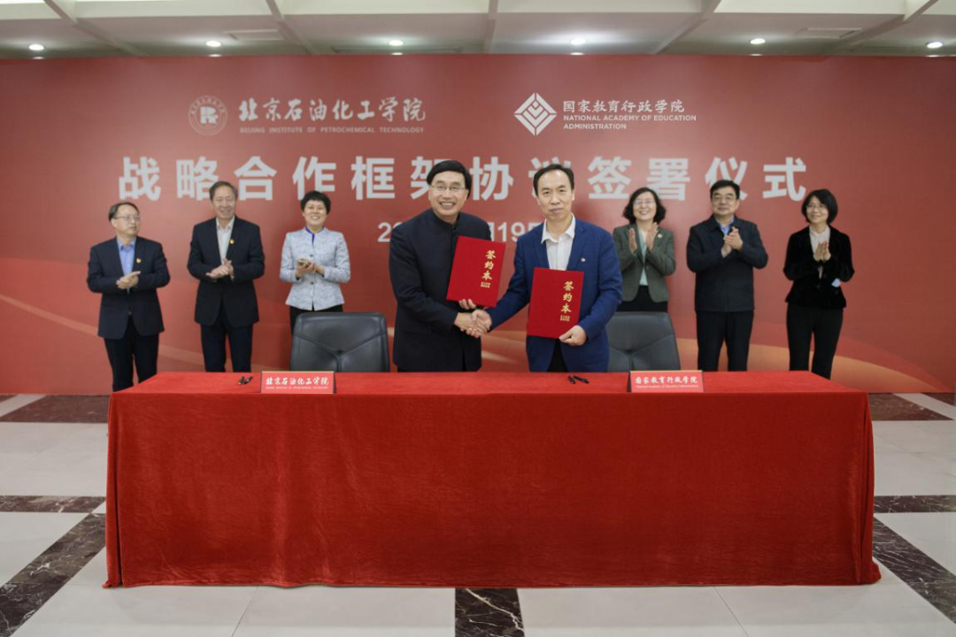 在深入貫徹落實黨的二十大精神、開展學習貫徹習近平新時代中國特色社會主義思想主題教育之際,4月19日,北京石油化工學院與國家教育行政學院舉行戰略合作框架協議簽約儀式。國家教育行政學院黨委書記、常務副院長侯慧君,北京石油化工學院黨委書記劉穎分別致辭。國家教育行政學院副院長于京天、王治軍、陳睿,北京石油化工學院黨委副書記、院長羅學科,黨委常委、副院長張泉利、陳家慶,黨委常委、組織部部長高峰,黨委常委、宣傳部部長曾衛兵,校長助理丁福臣,以及雙方相關部門負責人出席簽約儀式。儀式由張泉利主持。