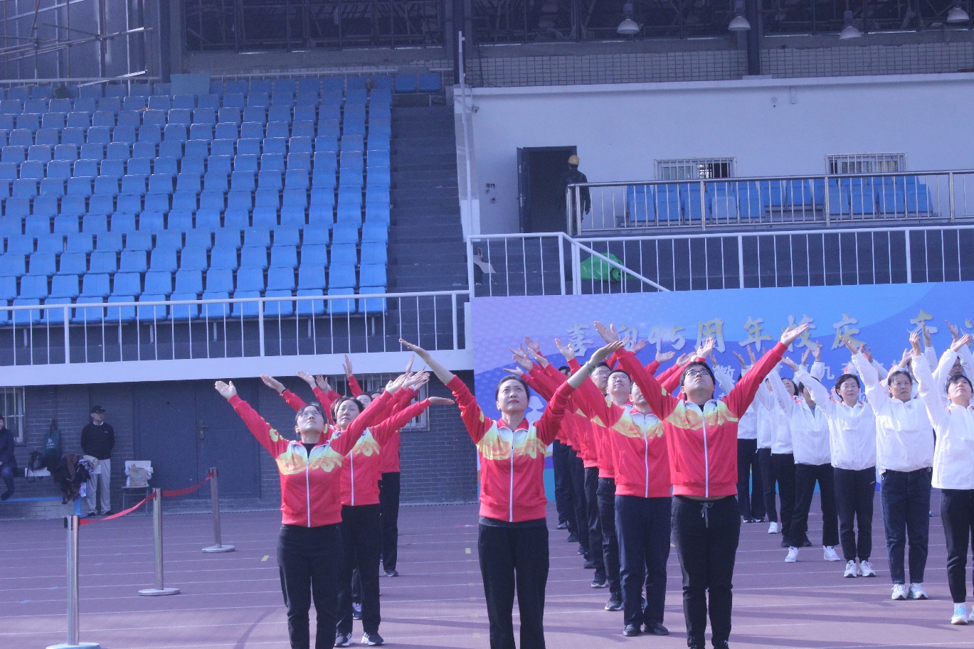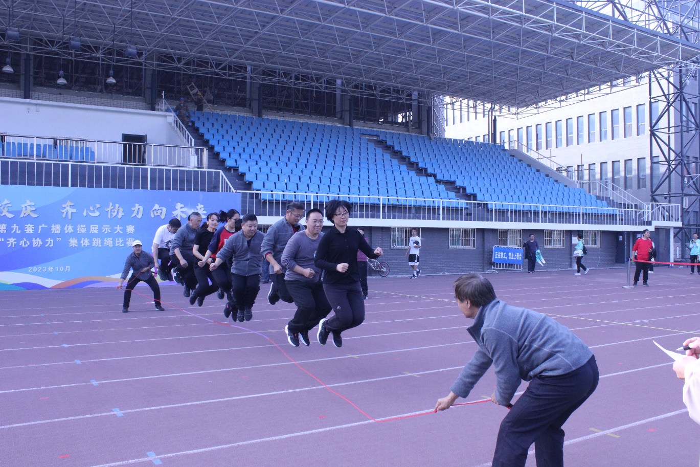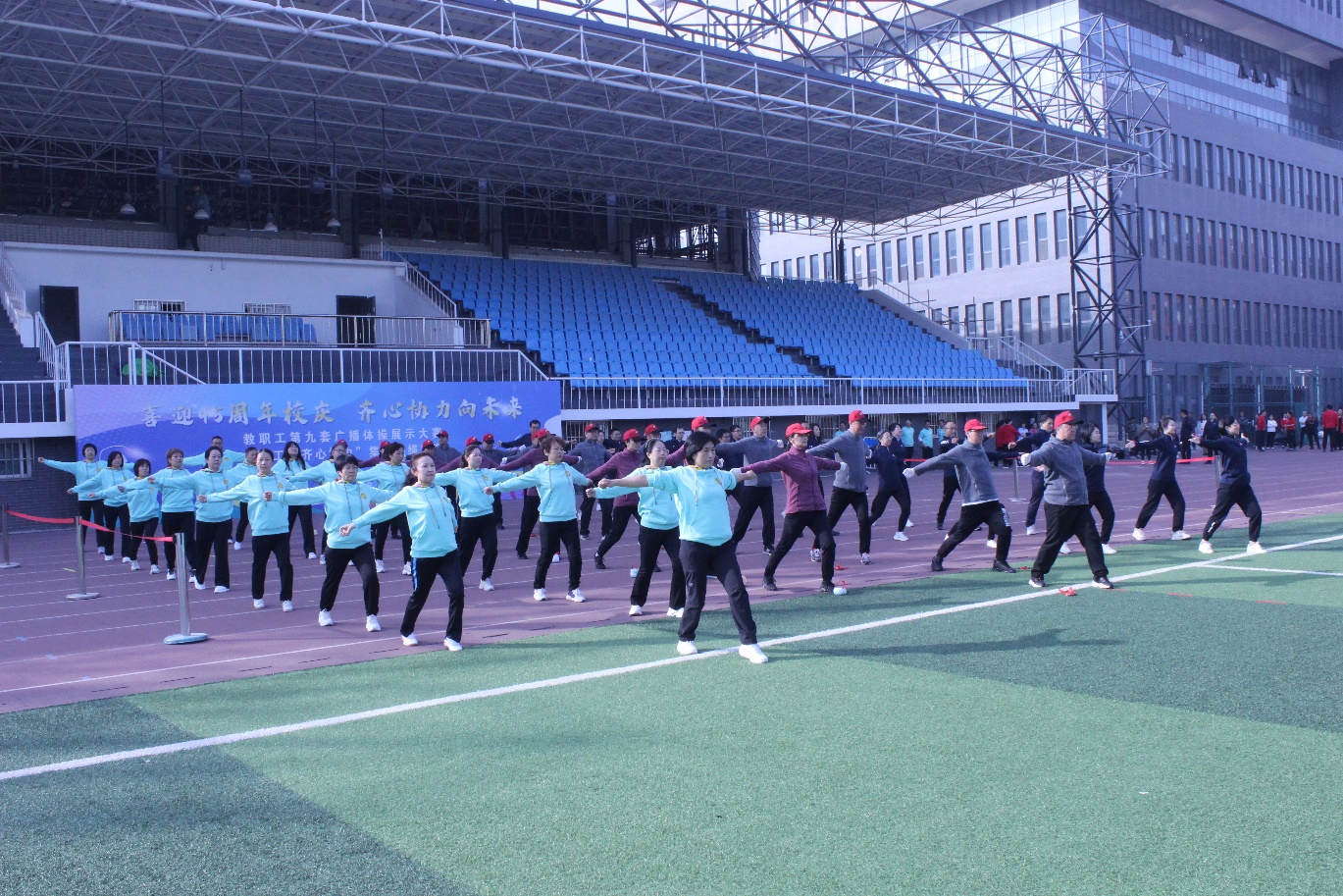為迎接學校45周年華誕,營造校園喜慶氛圍,推動教職工健身運動深入開展,豐富教職工文化體育生活,10月24日,學校工會在清源校區體育場舉辦了,教職工第九套廣播體操和齊心協力集體跳繩比賽活動。本次活動共有11個分工會187名職工參加了第九套廣播擦比賽,10個分工會120名職工參加了集體跳繩比賽。學校黨委常委、副院長張泉利,靳海波,校友辦主任何曉紅出席比賽活動。