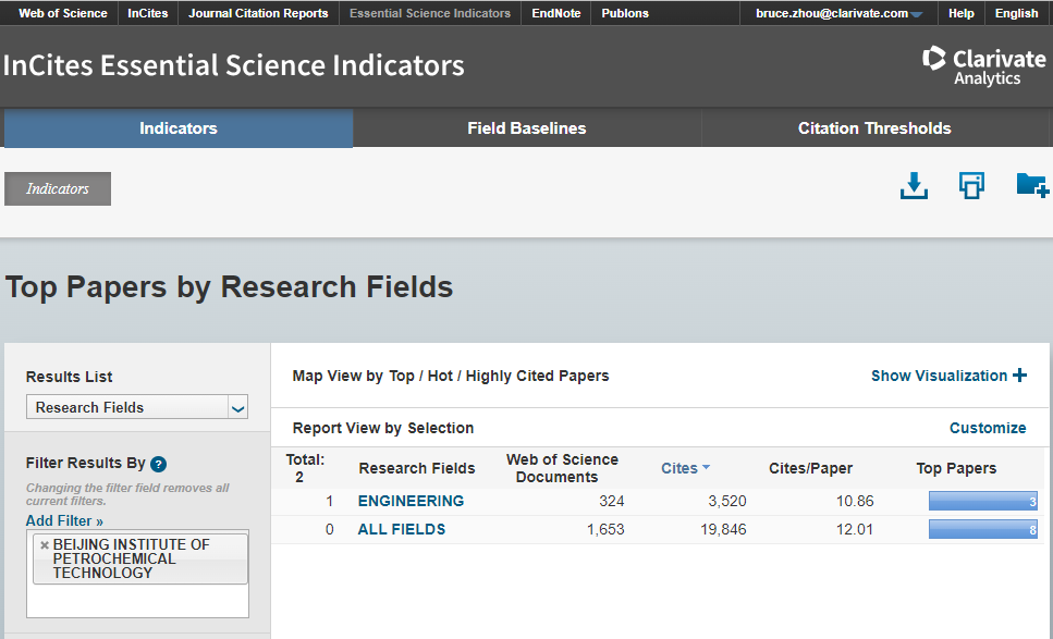 ESI數(shù)據(jù)庫共分22個學(xué)科領(lǐng)域,是基于科睿唯安Web of Science(SCIE/SSCI)所收錄的全球12000多種學(xué)術(shù)期刊的1000多萬條文獻(xiàn)記錄而建立的計量分析數(shù)據(jù)庫,以10年為一個周期對全球所有大學(xué)及科研機(jī)構(gòu)的SCI、SSCI論文及其引用情況等進(jìn)行統(tǒng)計和比較。ESI數(shù)據(jù)庫通過論文數(shù)、論文被引頻次、論文篇均被引頻次、高被引論文、熱點論文和前沿論文等6大指標(biāo),從各個角度對國家/地區(qū)科研水平、機(jī)構(gòu)學(xué)術(shù)聲譽(yù)、科學(xué)家學(xué)術(shù)影響力以及期刊學(xué)術(shù)水平進(jìn)行全面衡量,已成為當(dāng)今世界范圍內(nèi)普遍用以評價高校、學(xué)術(shù)機(jī)構(gòu)、國家/地區(qū)國際學(xué)術(shù)水平及影響力的重要評價指標(biāo)工具之一。