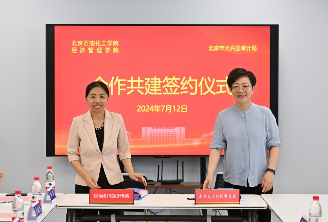 7月12日上午,北京石油化工學(xué)院經(jīng)濟(jì)管理學(xué)院與北京市大興區(qū)審計(jì)局舉行合作共建協(xié)議簽約暨校地共建研習(xí)基地揭牌儀式。