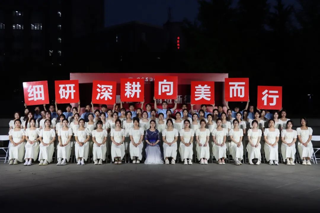 展演以“志承歲月·歌頌山河”“迎光而上·破浪前行”兩個篇章串聯起一條時代長河。全校8個院部的近800余名學生代表和合唱團、舞蹈團成員依次出場,演唱了《在燦爛陽光下》《祖國不會忘記》《有我》《我們都是追夢人》《沒有共產黨就沒有新中國》《旗》《不忘初心》《我乘著風飛過來》《起風了》《我愛你中國》《世界贈與我的》《紅旗飄飄》等經典曲目,唱出了一代代北石化人薪火相傳、踔厲奮發,為全力打造新時代首善之區工程師搖籃砥礪前行的初心與使命!