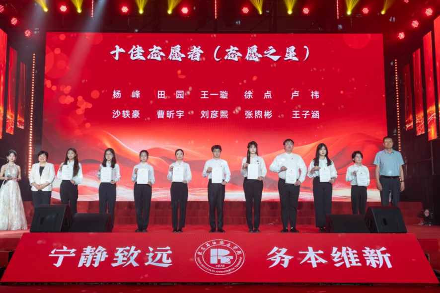 副校級干部、武裝部部長孫大慶和黨委常委、宣傳部部長曾衛兵為2024-2025學年北京石油化工學院志愿之星、十佳志愿者頒獎