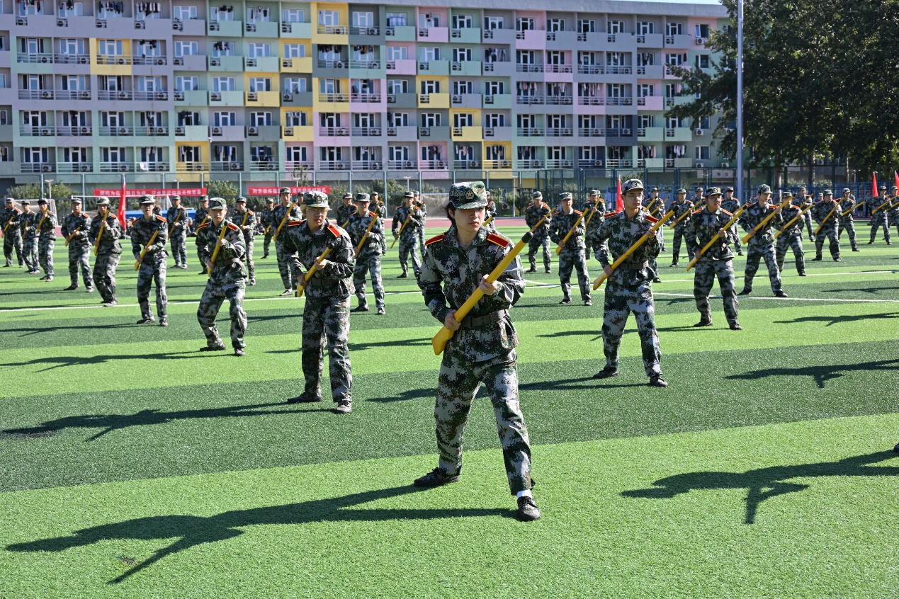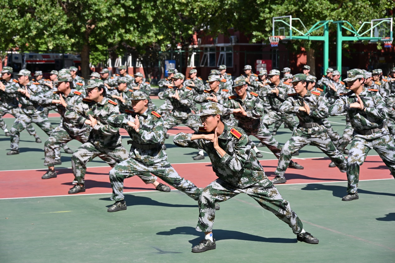 各營連依次進行分列式展示和刺殺操、擒敵拳、匕首操三個特色項目匯報表演。同學們以颯爽的英姿、堅定的步伐、嘹亮的口號、高昂的士氣,充分展示著2023級本科生驕人的軍訓成果。