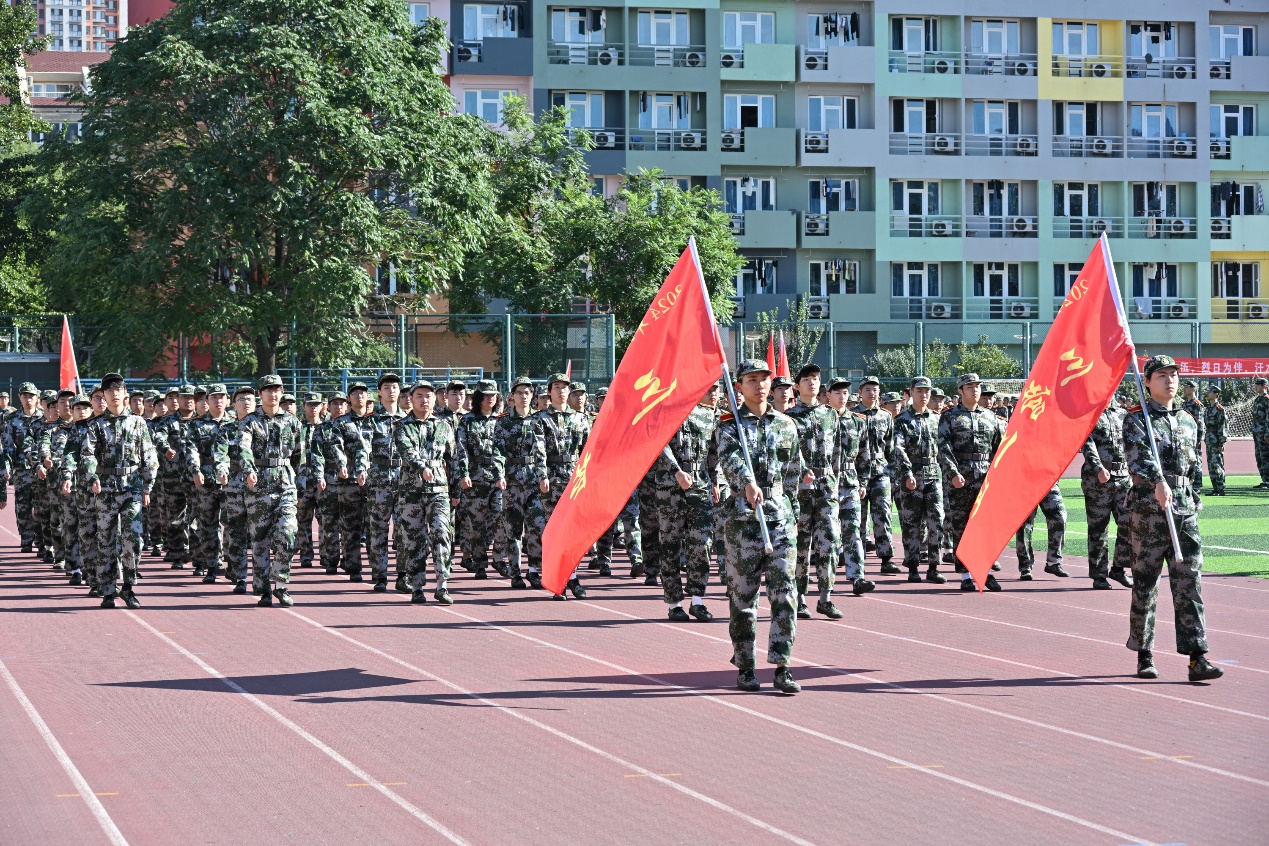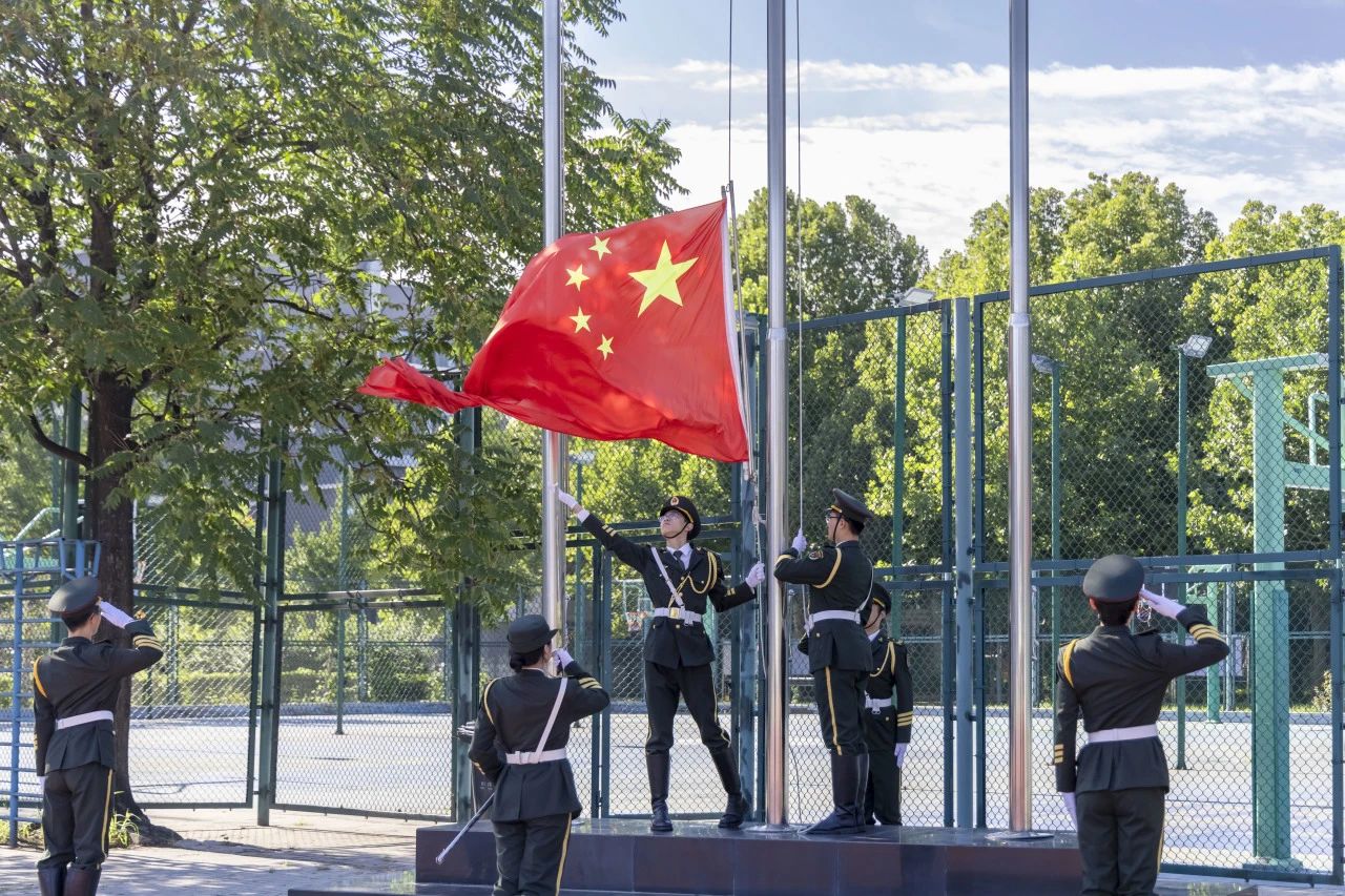 隨著《義勇軍進行曲》的奏響,軍訓閉幕式拉開了帷幕。五星紅旗在晨曦中緩緩升起,全體師生行注目禮,高唱國歌,共同見證了這一莊嚴而神圣的時刻。